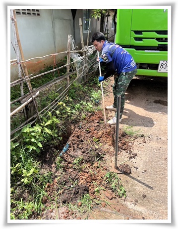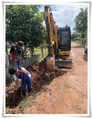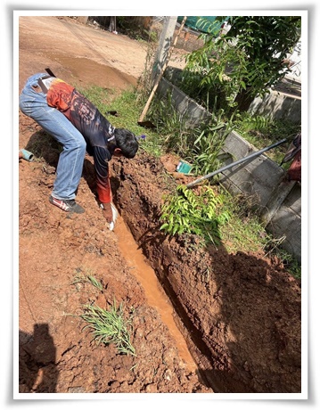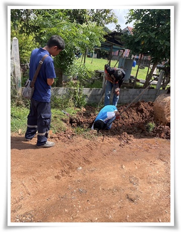 งานประปา กองช่าง องค์การบริหารส่วนตำบลสำราญใต้ ลงพื้นที่ซ่อมท่อประปา บ้านโพนทอง หมู่ ๑๐ ตำบลสำราญใต้ อำเภอสามชัย จังหวัดกาฬสินธุ์
