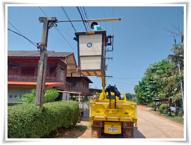 งานไฟฟ้า กองช่าง องค์การบริหารส่วนตำบลสำราญใต้ ลงพื้นที่เปลี่ยนสวิตซ์ควบคุมและซ่อมแซมไฟกิ่ง บ้านคำหุ่ง หมู่ ๖ ตำบลสำราญใต้ อำเภอสามชัย จังหวัดกาฬสินธุ์
